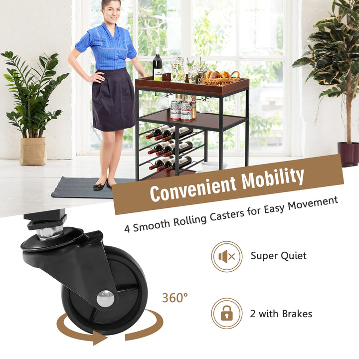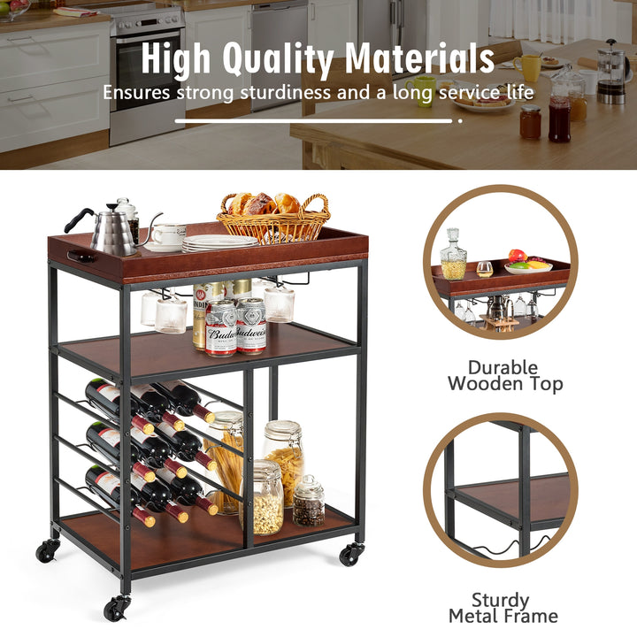 3 Tiers Storage Bar Serving Cart with Wine Rack