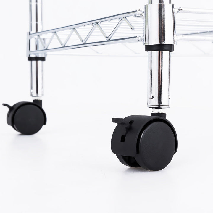 Lockable Casters for Mobility and Stability: The 360-degree swiveling casters allow for easy movement of the rack to any desired corner of your kitchen. The wheels can also be locked to keep the rack firmly in place, offering both mobility and stability.