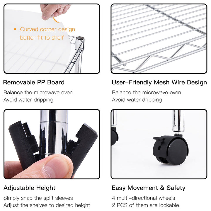 3-Tier Kitchen Microwave Baker Stand Storage Cart Rack