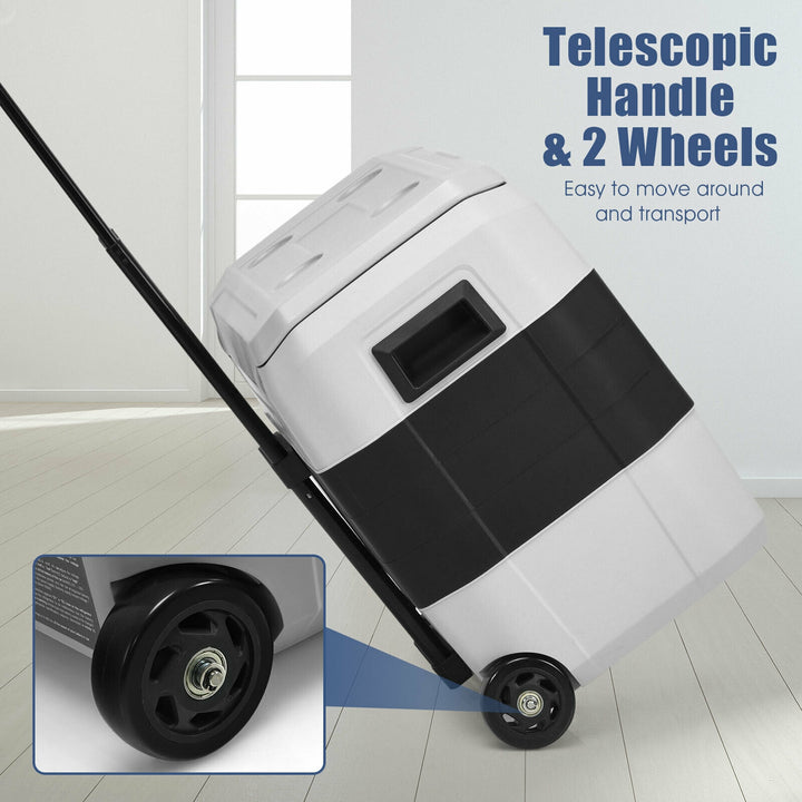 Portability Perfected: Equipped with robust wheels and a pull-up handle, this portable fridge is your ideal travel companion, ready for any adventure. Compatibility with both 12/24V DC and 100 - 240V AC power inputs underscores its versatility for use in various settings, from outdoor excursions to home use.