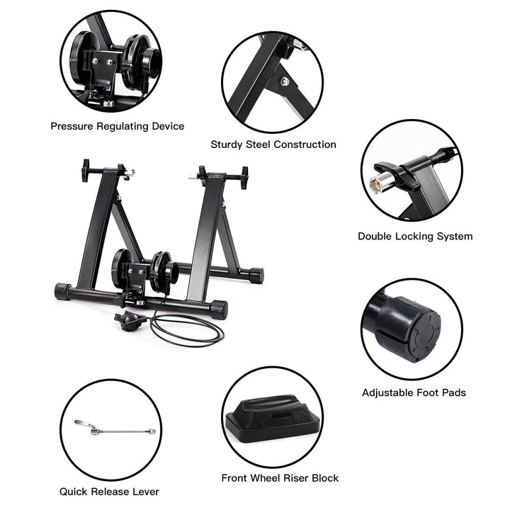 Sturdy Steel Construction: Crafted from heavy-duty A3 steel with a solid, extra-wide frame, this bike trainer ensures maximum stability during use. It supports a maximum load of 330 pounds and is compatible with 26"-28" or 700C quick-release road or mountain bikes.
