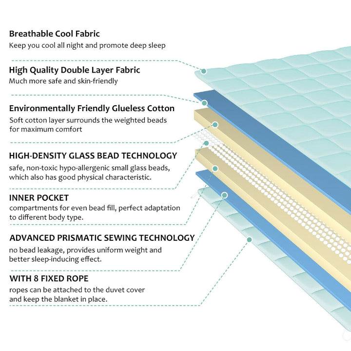 Innovative Design for Comfort: Featuring high-density stitches to prevent bead leakage and a 7-layer structure that conforms to your body, this blanket provides personalized comfort that adjusts to your shape, enhancing the calming effect.