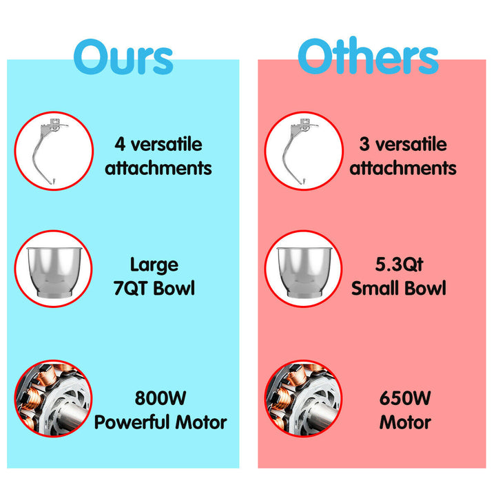 Multipurpose Attachments for Every Task: The mixer comes with three essential attachments - a dough hook for bread, a beater for batters and mixes, and a whisk for airy confections. Additionally, it¡¯s equipped to handle ground meat and juicing tasks, making it a versatile powerhouse in your kitchen.