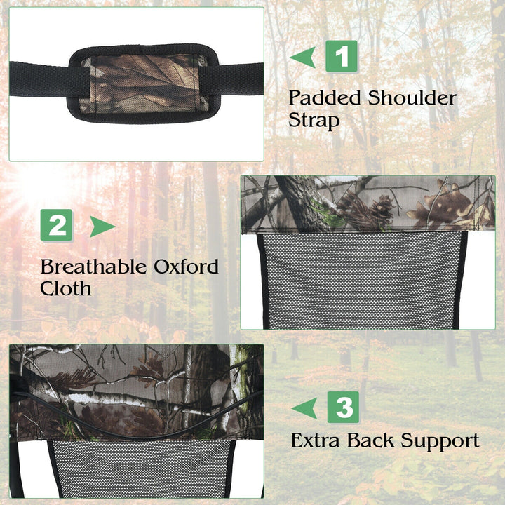 Introducing the Ultimate Hunting Seat ¨C Engineered for Durability, Comfort, and Stealth! This meticulously designed hunting seat is your perfect companion for any outdoor adventure, from hunting expeditions in the jungle to casual camping trips. Crafted with a robust iron frame and featuring a foldable design, this chair combines durability, convenience, and camouflage for the ultimate outdoor experience.