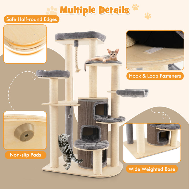 Exceptional Stability and Safety: Constructed from solid wood multi-layer laminated board, our cat tree stands firm and stable, with a wide base to prevent tipping. Anti-slip pads protect your floors from scratches, ensuring peace of mind.