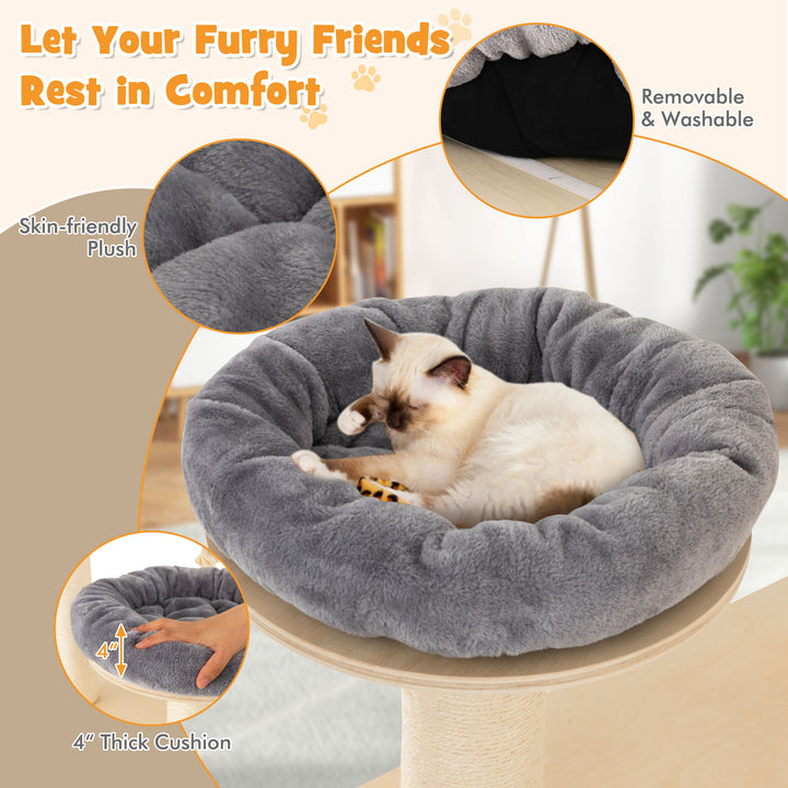 Natural Claw Care: Equipped with thick scratching posts and a large sisal-covered area, the tower invites cats to sharpen their claws, maintaining healthy nails while keeping them away from your furniture.