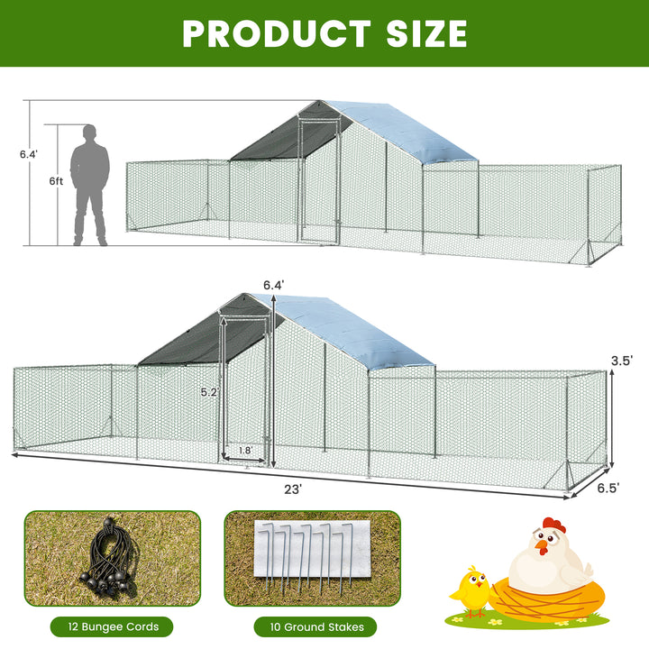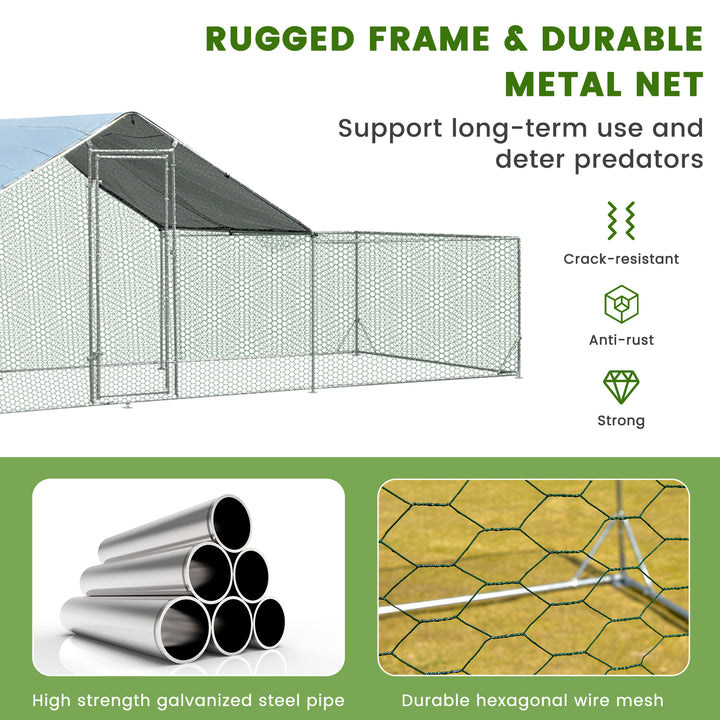 Large Walk-in Metal Chicken Coop with Cover for Farm Backyard