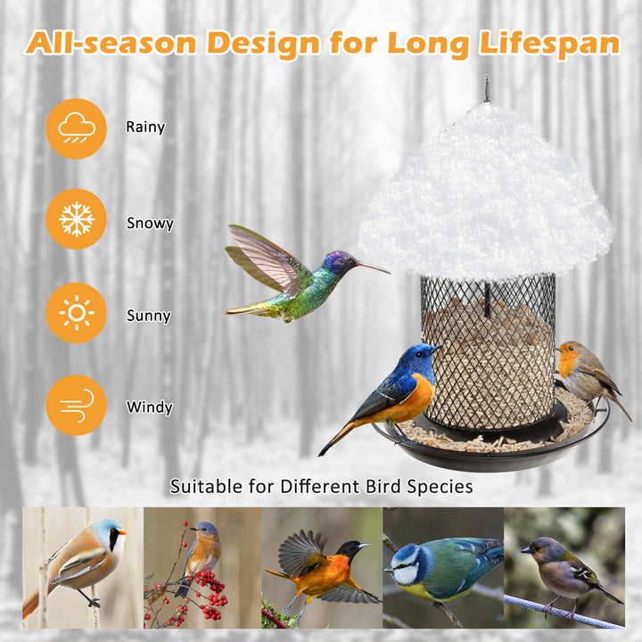 Seed Safety and Dryness: Constructed with chew-proof and durable metal mesh, the feeder prevents damage by squirrels and other wildlife. Strategically placed drainage holes ensure seeds remain dry, preserving their quality and appeal to birds.