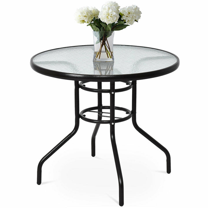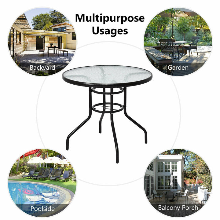 Our Elegant Round Glass-Top Patio Table is the perfect addition to any outdoor setting, offering both beauty and functionality. Whether youre hosting a summer barbecue, enjoying a quiet morning coffee, or seeking a stylish shade solution, this patio table meets all your needs with elegance and ease.
