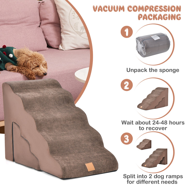22 Inches and 11 Inches Foam Pet Stairs Set with 5-Tier and 3-Tier Dog Ramps