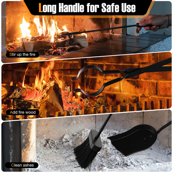Durable and Sturdy Construction: Crafted from premium iron with a high-temperature-resistant coating, this fireplace tool set is built to last. The solid iron pipes and stable base ensure that the tools are securely held in place, preventing any accidental tipping.
