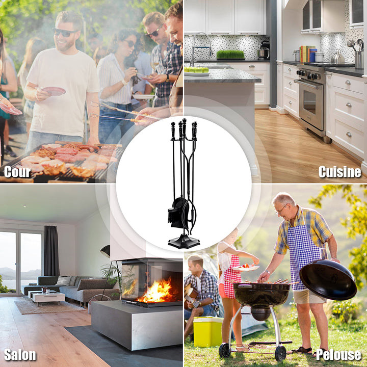 Durable and Sturdy Construction: Made with high-quality iron and coated for high-temperature resistance, this heavy-duty set ensures longevity and stability. The solid iron pipes and stable base keep the tools upright and prevent tipping.