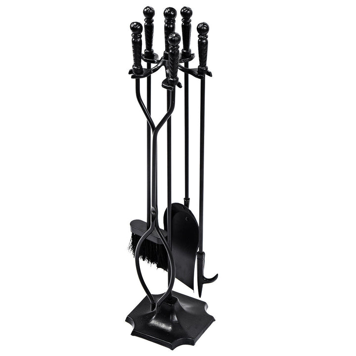 Elevate your fireplace maintenance with our 5-Piece Fireplace Tools Set, a comprehensive solution designed for convenience, durability, and elegance. This set includes essential tools for managing your fireplace, including a poker, tong, brush, shovel, and a convenient stand for storage. Crafted from premium iron with a high-temperature resistant coating, this set is built to last and enhance the look and functionality of your fireplace area.
