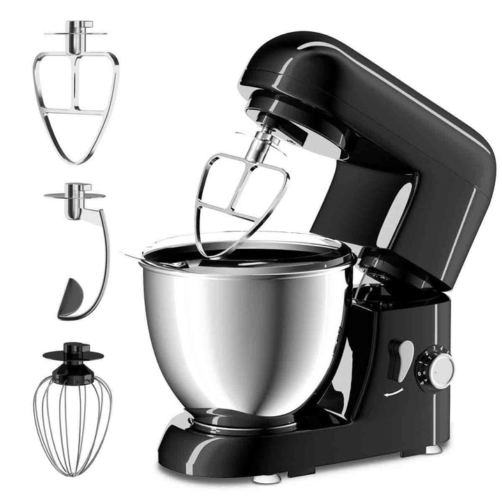 Multiple Attachments for Variety: Comes equipped with essential attachments including a mixer blade, dough hook, eggs whisk, and a detachable transparent splash guard, offering unparalleled versatility in creating pastries, dough, sweets, and more.