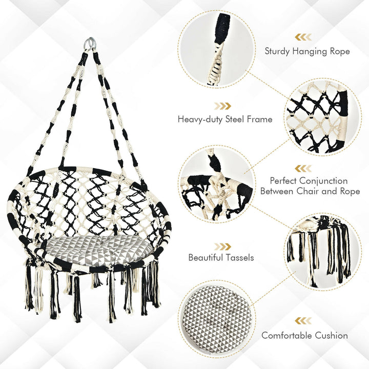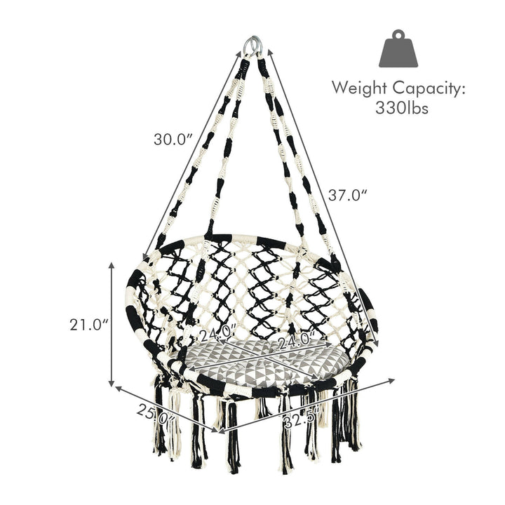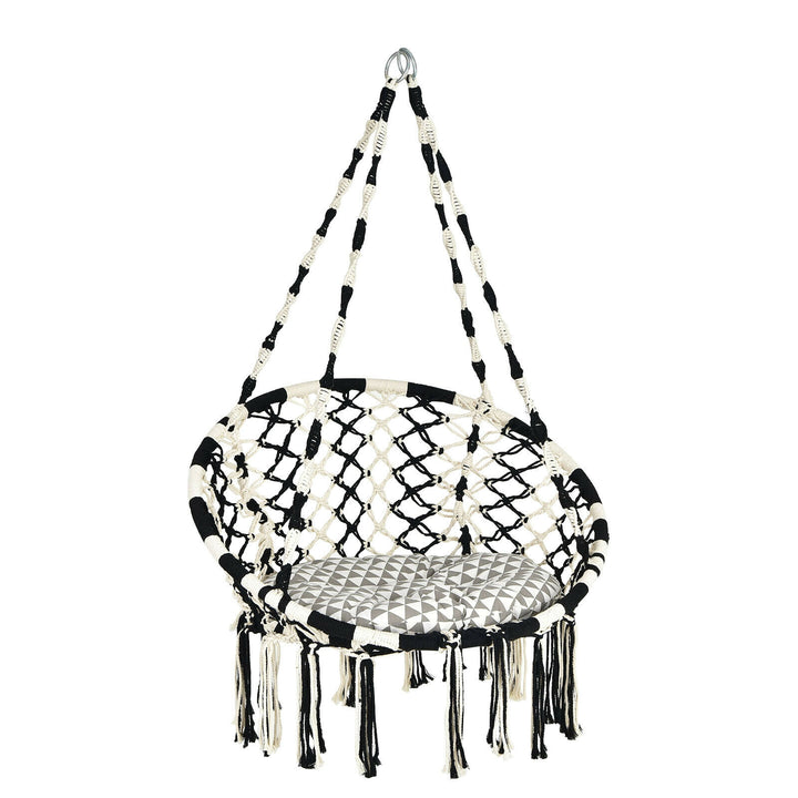 Hanging Hammock Chair with Cushion Macrame Swing Cotton Rope Indoor Outdoor