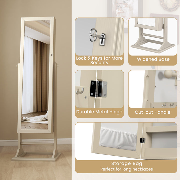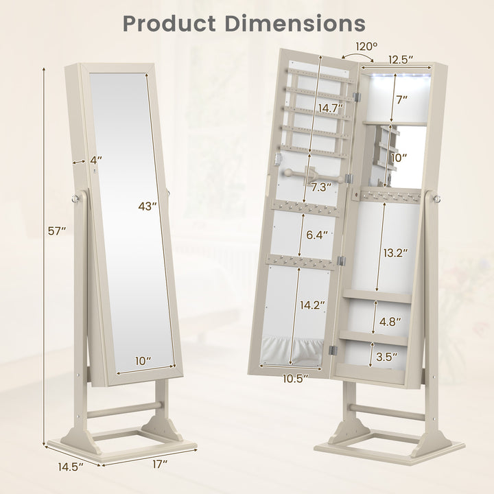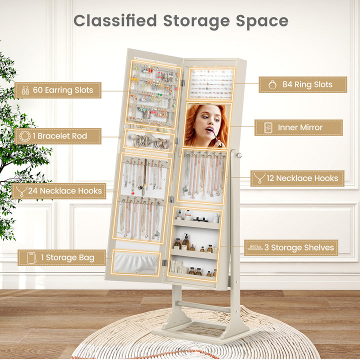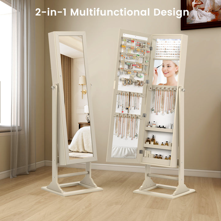 Freestanding Lockable Jewelry Armoire with Full-Length Mirror and 6 LED Lights