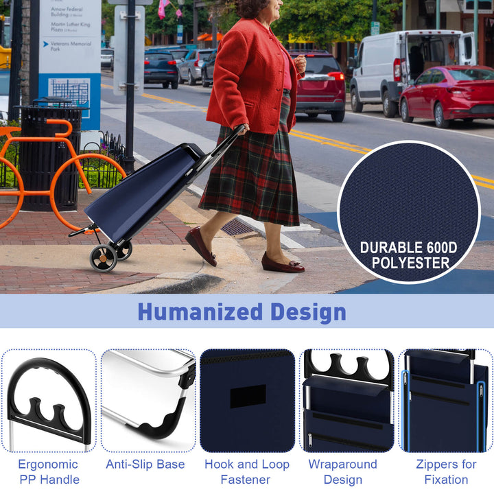 Designed with Care: The lightweight yet durable aluminum frame, coupled with an anti-slip base, provides increased stability and longevity. An ergonomic PP handle offers comfort during use, making your shopping experience more enjoyable. Additionally, the convenience of a machine-washable bag at 86¡ãF ensures maintenance is hassle-free and straightforward.