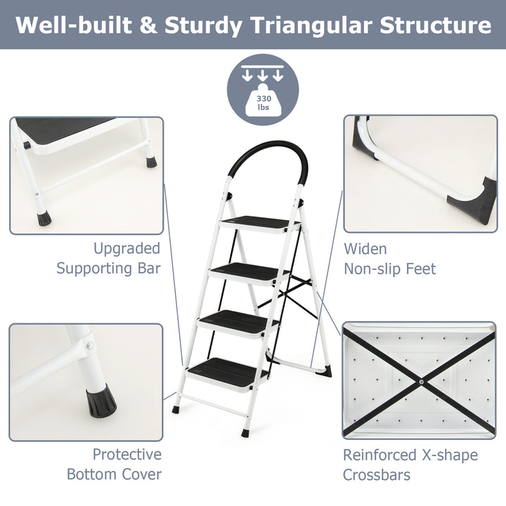 4 Step Folding Ladder with Anti-Slip Pedal Platform 330Lbs Capacity