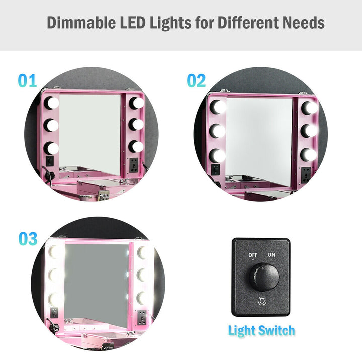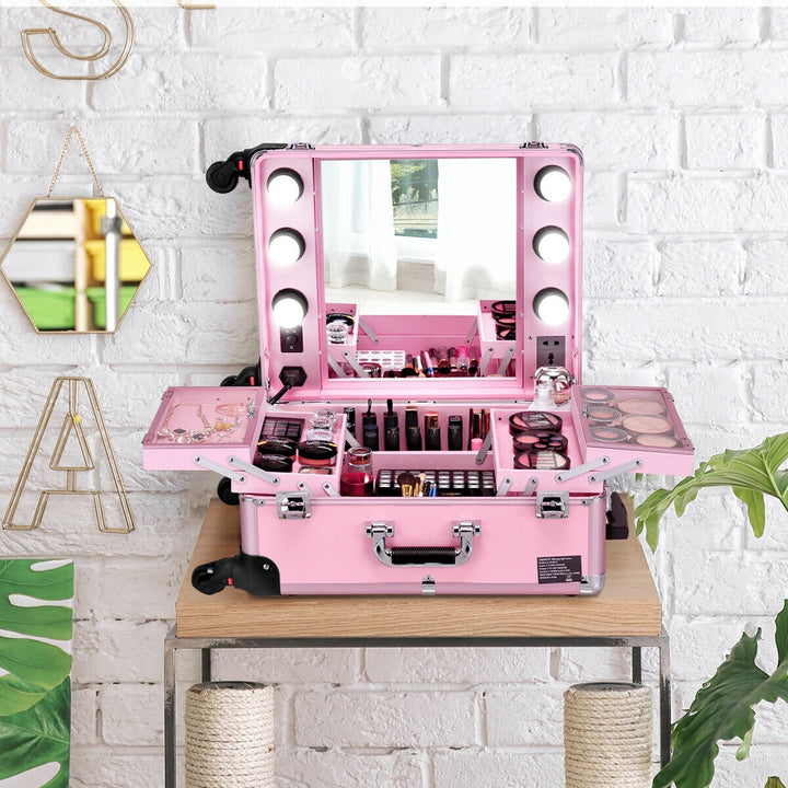 Dimmable LED Mirror: Equipped with a high-definition mirror surrounded by six LED lights, this case offers adjustable brightness settings. This feature ensures optimal lighting conditions for makeup application, reducing eye strain in various lighting environments. The built-in mirror also contributes to a lighter travel load.