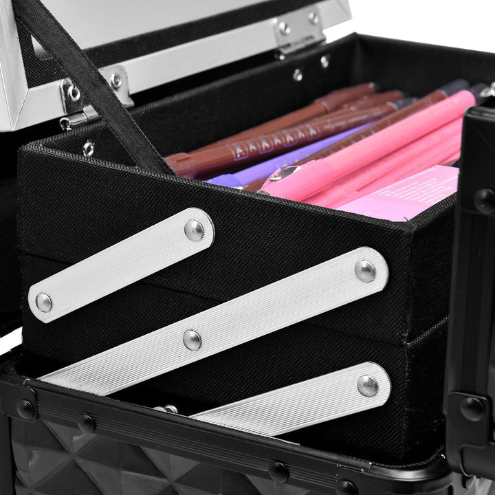 Ample Storage Space: Equipped with two extendable trays, the case provides easy access to your products and tools, making organization and retrieval a breeze. This thoughtful design ensures that all your cosmetics and accessories are neatly arranged and within reach.