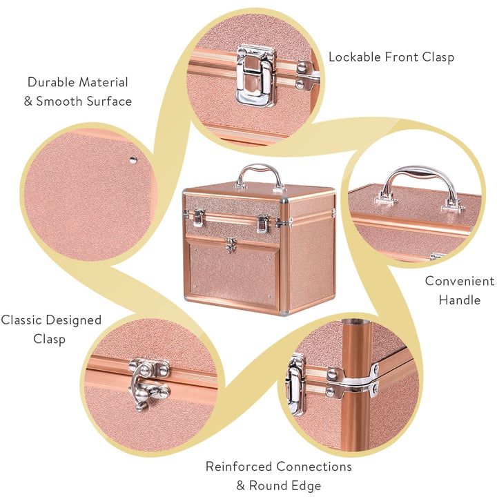 Our Nail Accessories Organizer and Makeup Train Case is more than just a storage solution; its a statement of elegance and efficiency. Whether youre a beauty enthusiast looking to streamline your collection or a professional on the go, this case provides the perfect blend of functionality, security, and style. Keep your beauty essentials organized and accessible, all while adding a touch of sophistication to your makeup routine.