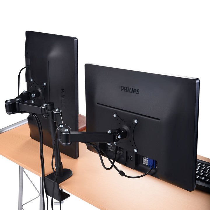 Dual Monitor Arm Desk Table Mount Stand for 2 LCD Fully Swivel Clamp up to 27¡±