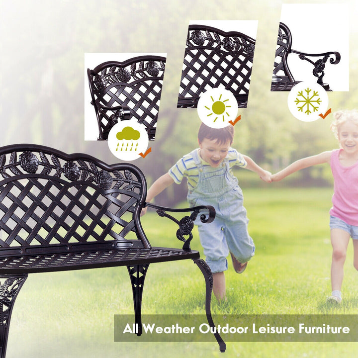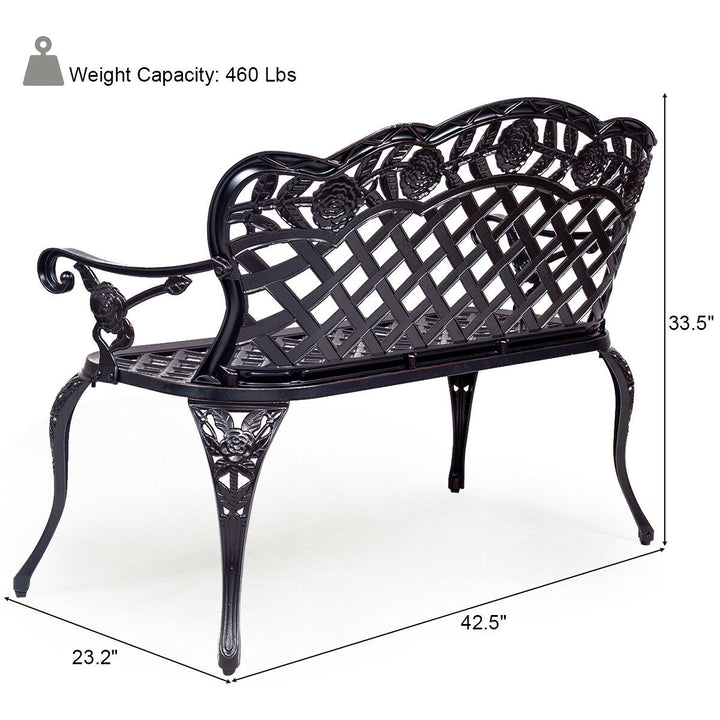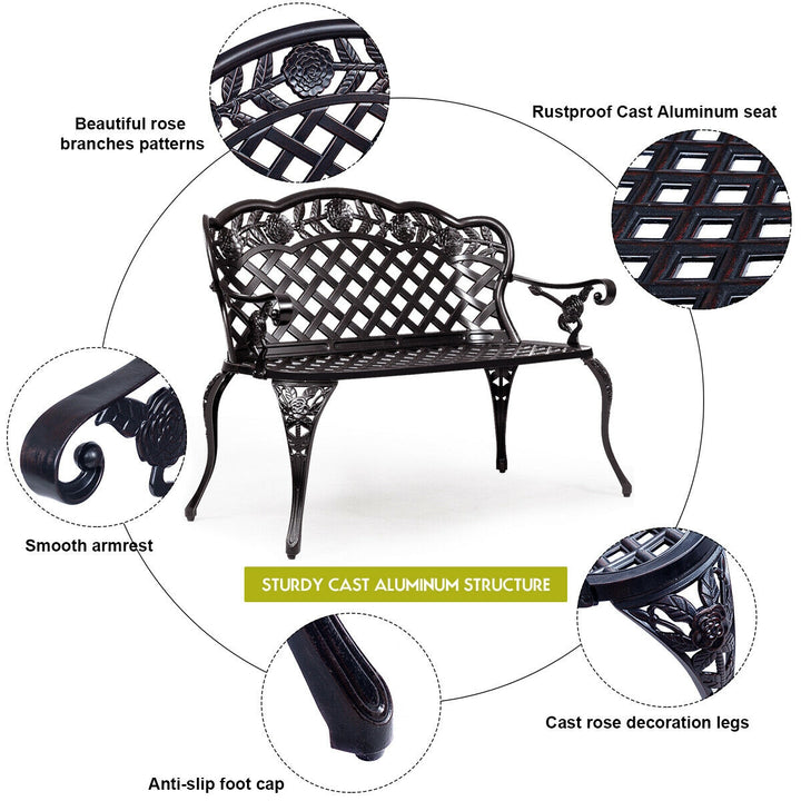 Weather-Proof High-Quality Material: Constructed from well-painted cast aluminum, this garden bench is built to withstand the elements. Its durable design ensures that it does not rust easily, offering long-lasting service and continued enjoyment through all seasons.