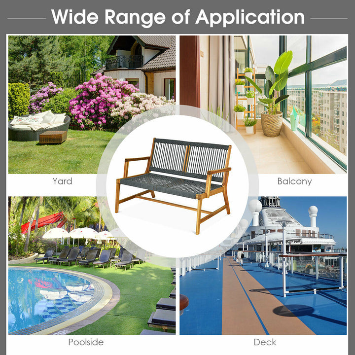 Elevate your outdoor leisure time with our Acacia Wood and Woven Rope Loveseat, a piece that combines functionality, comfort, and elegance. Its more than just a seating option; its a stylish statement that promises to transform your outdoor area into a haven of relaxation.
