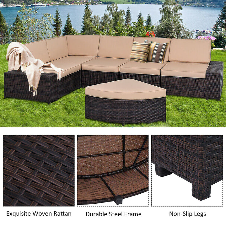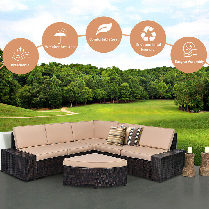 6 Pcs Patio Furniture Set Rattan Wicker Table Shelf