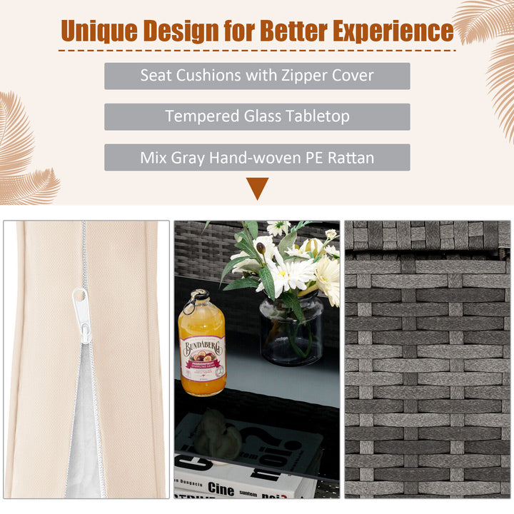 4 Pieces Patio Rattan Furniture Set with Cushion and Table Shelf