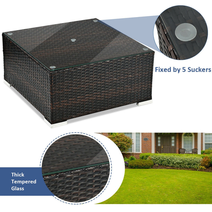 5 Pieces Patio Rattan Sectional Furniture Set with Cushions and Coffee Table