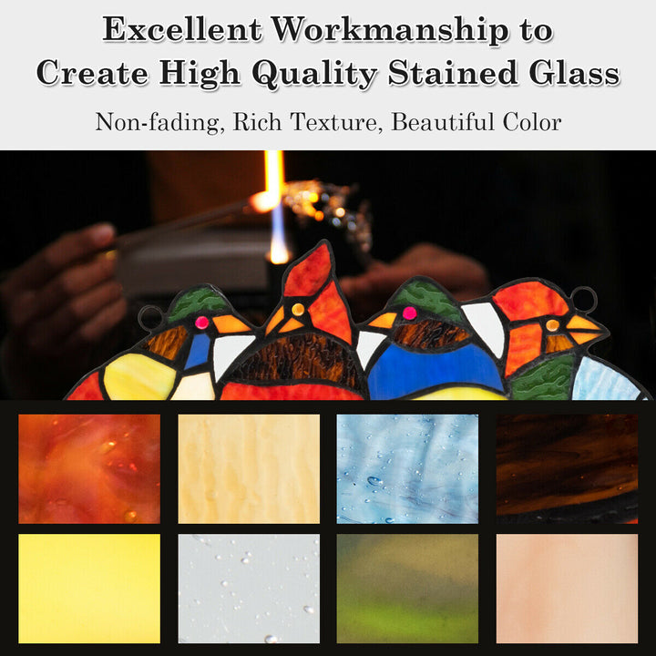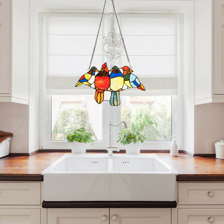 14.5 Inch Tiffany Glass Birds Window Panel Hangings with Chain