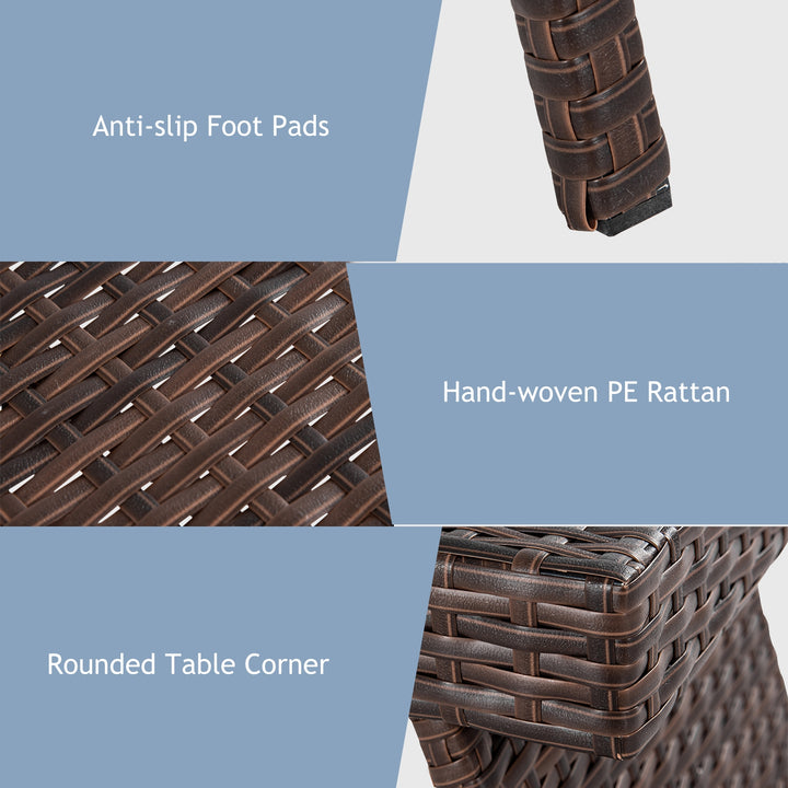 Folding PE Rattan Side Coffee Table Patio Garden Furniture