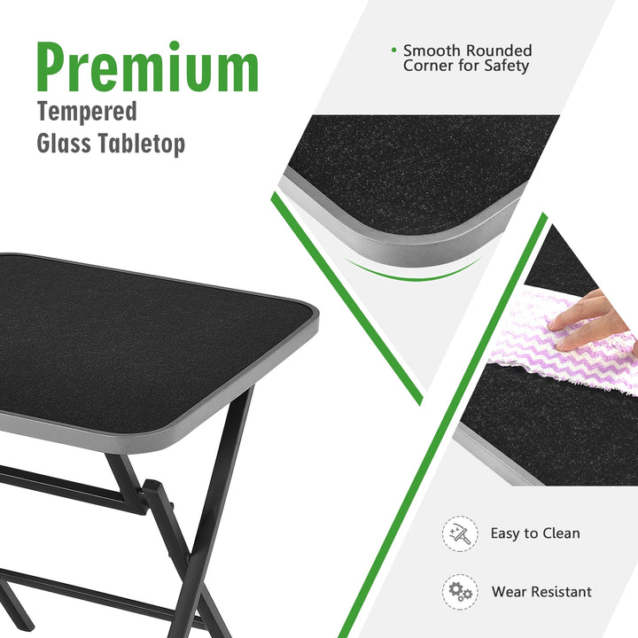Durable Tempered Glass Top: The table is equipped with a high-quality tempered glass top, known for its wear resistance and easy maintenance. Its waterproof surface can be effortlessly wiped clean with a wet towel, and the tables edges are meticulously crafted to be smooth and rounded for safety.