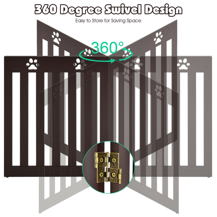 24 Inch Folding Wooden Freestanding Pet Gate Dog Gate with 360 Degree Hinge