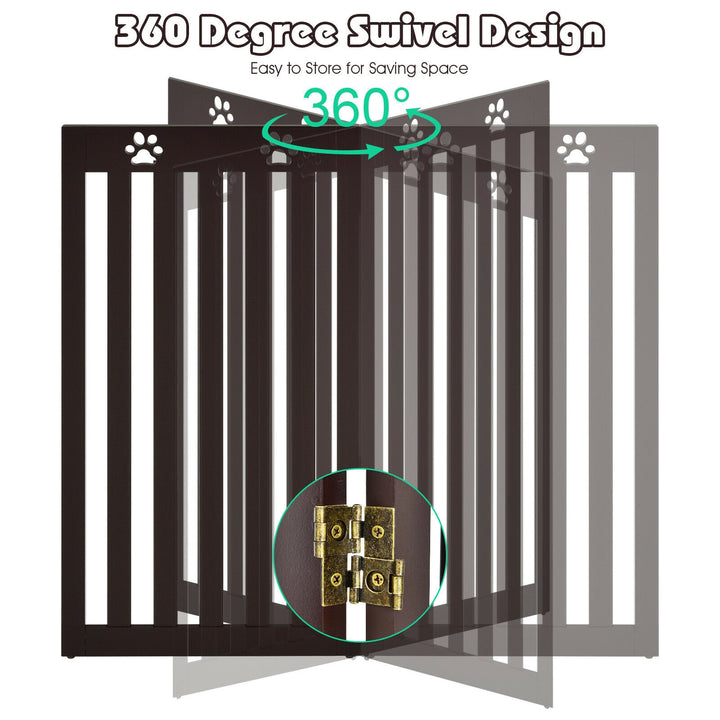 36 Inch Folding Wooden Freestanding Pet Gate with 360 Degree Hinge