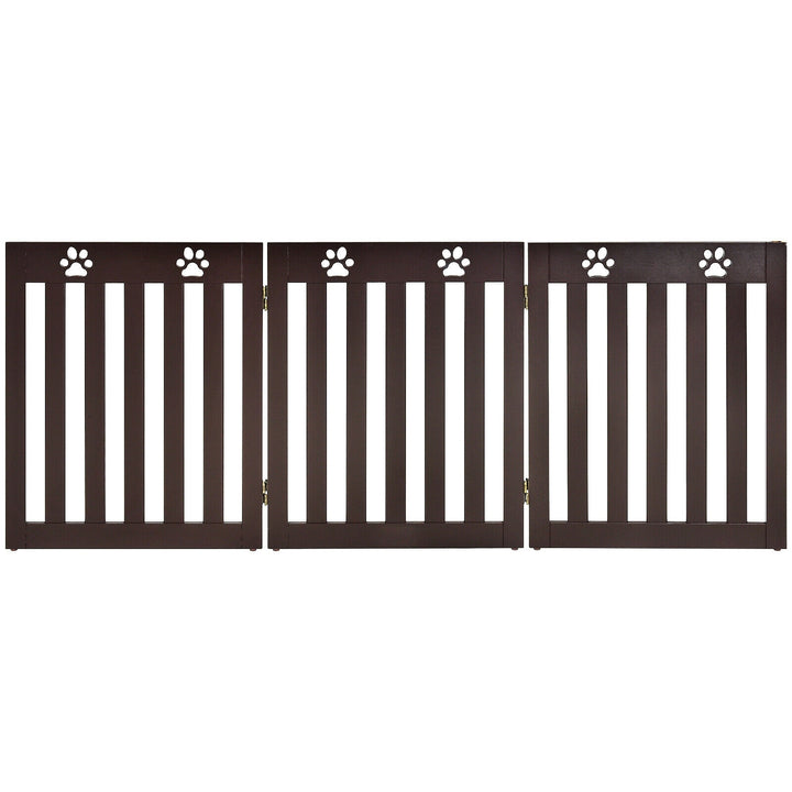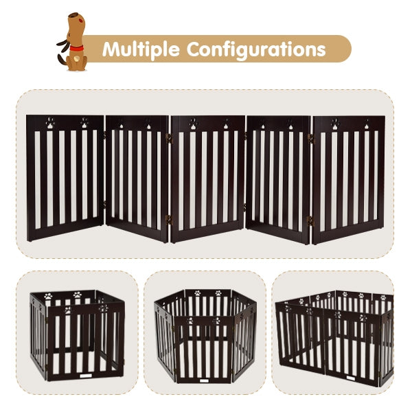 24 Inch Folding Wooden Freestanding Dog Gate with 360 Degree Flexible Hinge for Pet