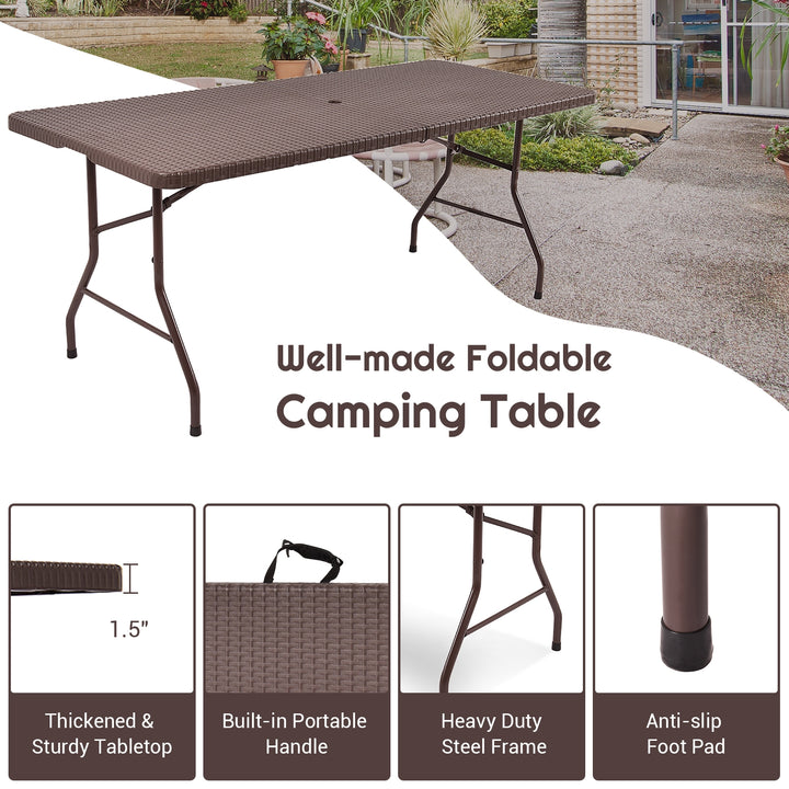 6 Feet Folding Portable Rattan Table with Carrying Handle
