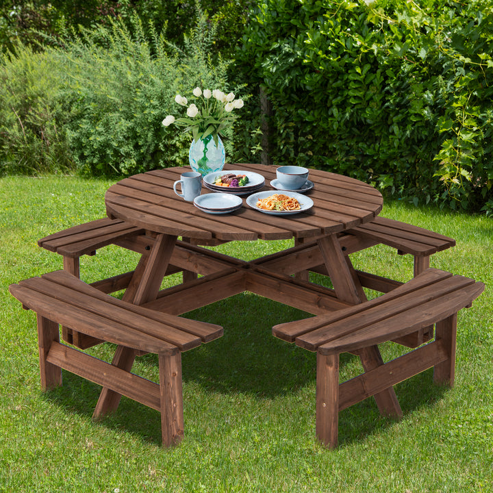 Patio 8 Seat Wood Picnic Dining Seat Bench Set