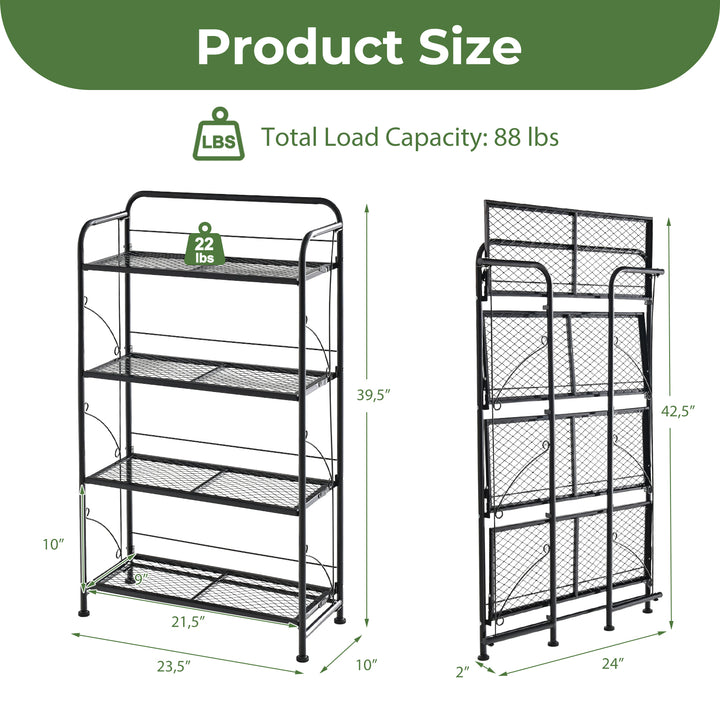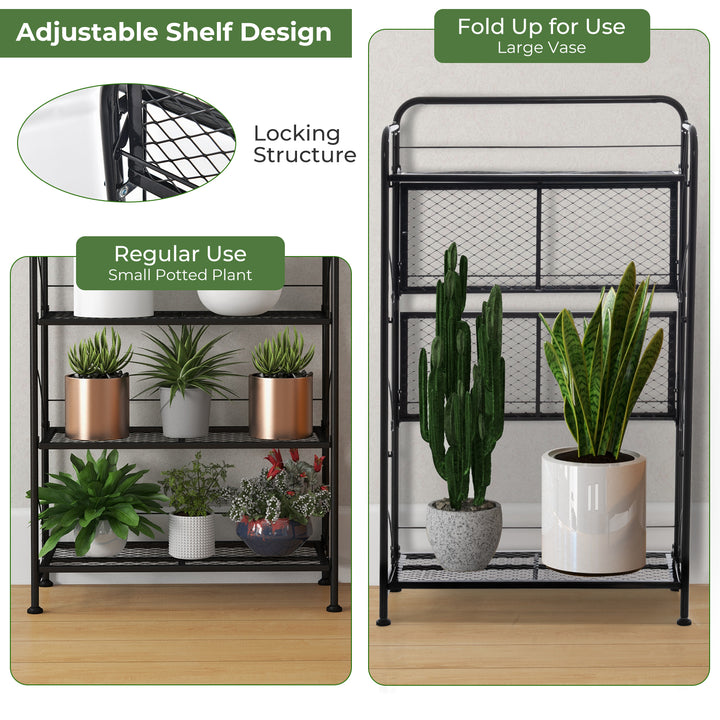 4-Tier Folding Plant Stand with Adjustable Shelf and Feet