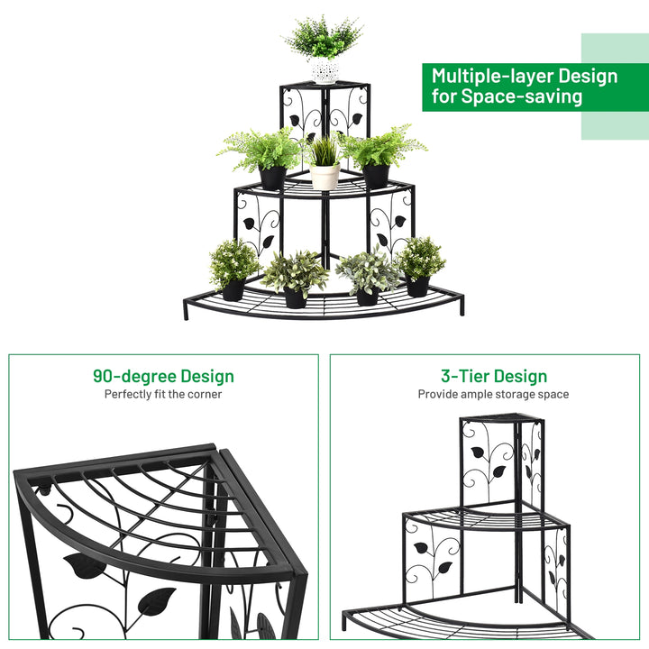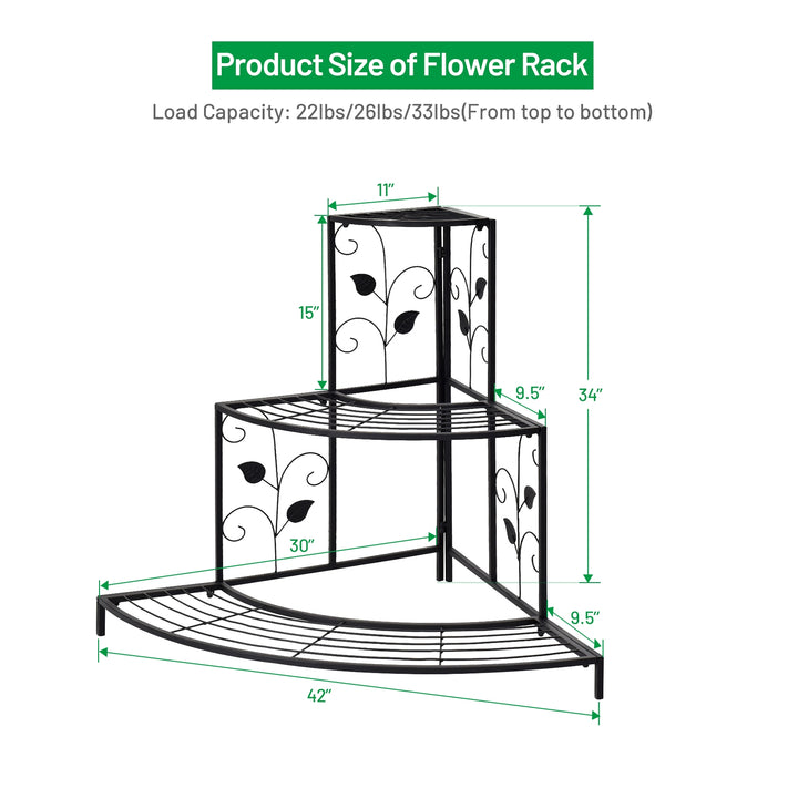 Elegant Design: Boasting a classic black finish complemented by an elegant floral design, this decorative corner rack adds a modern yet timeless appeal to your decor. Its designed to enhance the aesthetics of any corner in your home, balcony, or patio.