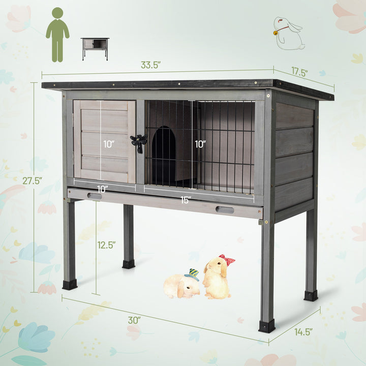 Small Elevated Rabbit Hutch with Hinged Asphalt Roof and Removable Tray
