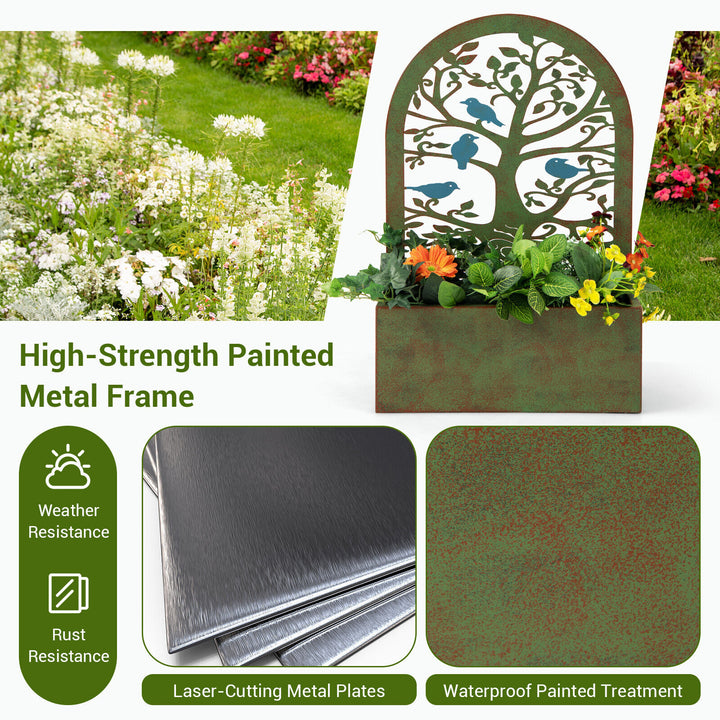 Elegant Design with Bird and Tree Pattern: The trellises showcase a graceful bird and tree pattern, transforming the metal planter into a stunning decorative piece that complements any setting.