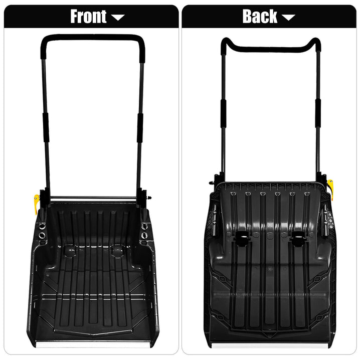 High-Efficiency Snow Removal: With a shovel plate measuring 24" x 26" x 9.5", this snow pusher boasts a large capacity, allowing for the removal of substantial snow layers in a single push. Its ergonomic radian design optimizes snow collection and disposal, significantly reducing the time and effort required to clear snow pile-ups.