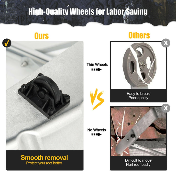 Efficient Snow Removal: Equipped with a large 25" x 6" blade, this rake allows you to remove a significant amount of snow with each scoop, saving time and effort. The blades design includes two rollers to ensure a smooth operation while protecting your roof from scratches.