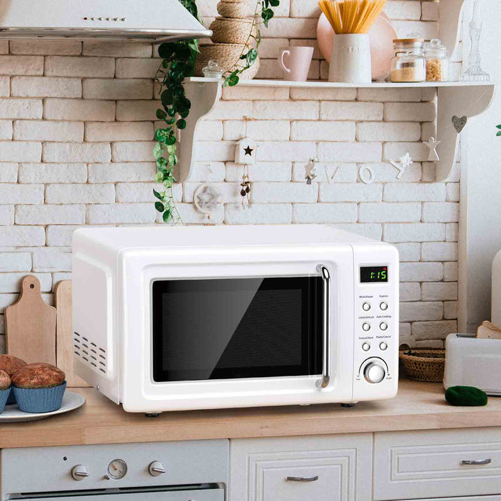 700W Retro Countertop Microwave Oven with 5 Micro Power and Auto Cooking Function
