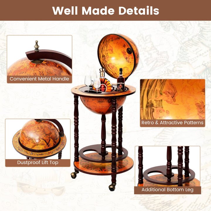 Robust and Durable Structure: Constructed from solid wood, this globe bar is built to last. The craftsmanship ensures both robustness and durability, while the three supportive legs beneath the globe guarantee stability, making it a reliable piece for any setting.